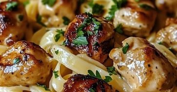 Garlic Butter Chicken Bites with Creamy Parmesan Pasta Ingredients: – 1 lb chicken breast, cubed – 8 oz pasta (penne…